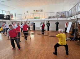 Für Markus Kleinlein hielt der zweite Tag ebenfalls ein besonderes Highlight bereit: Er durfte als Meister intensiv mit dem Langstock trainieren. Diese traditionelle WingTsun-Waffe stellt hohe Anforderungen an Stand und Körperstruktur, an Timing und Distanzgefühl sowie an die präzise Koordination zwischen Armen und Beinen. Unter Anleitung eines Großmeisters in diesem Bereich zu arbeiten, ist eine wertvolle Gelegenheit, die man nicht alle Tage bekommt und die das eigene Verständnis der Kampfkunst nachhaltig vertieft.